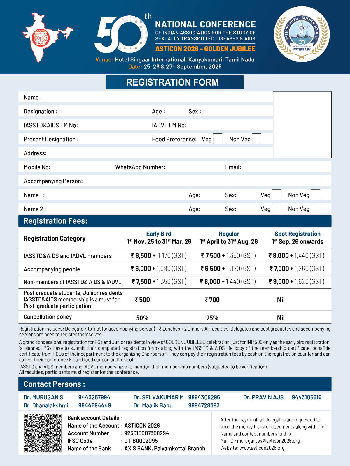 Dr.C.N.Sowmini, the then Director of the Institute of Venereology, Madras Medical College, Chennai, who , with the co-operation of a handful of committed workers, founded the Indian Association for the Study of Sexually Transmitted Diseases (IASSTD) in the year 1975. Association has been registered under section 10 of the Act with Registrar of Societies, Chennai. Later, in the year 1993, the name of the Association was changed to IASSTD & AIDS and this has also been registered under the above society.